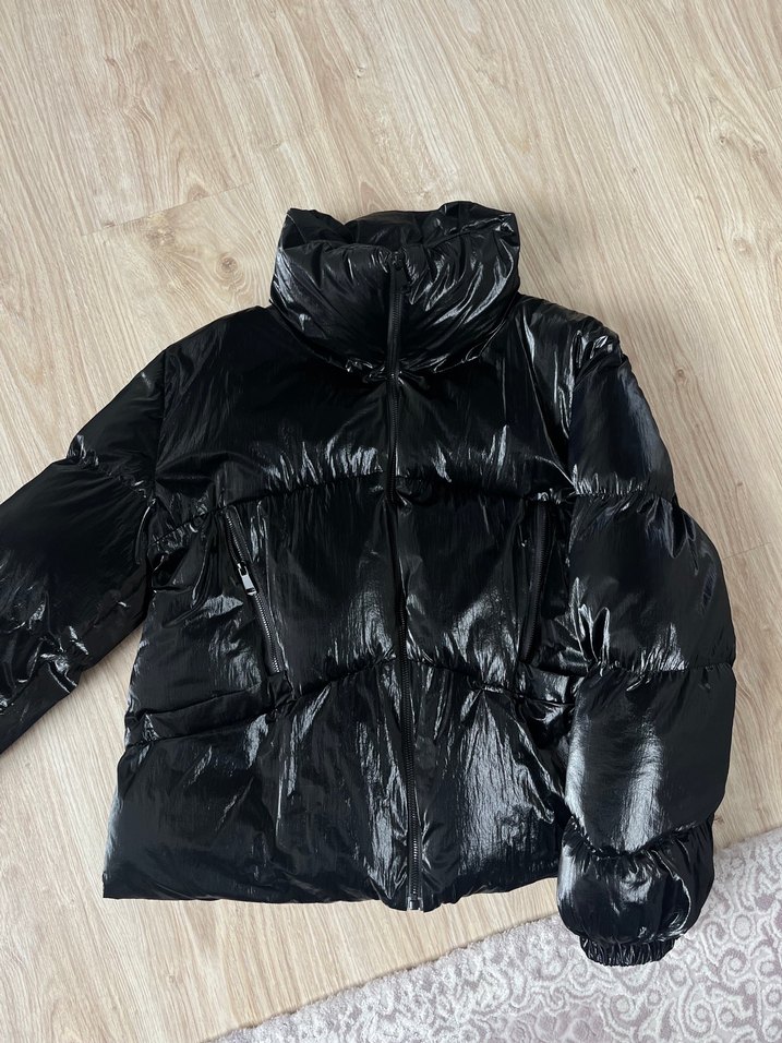 Siyah, vücuda oturan bu kışlık mont yüksek yakalı ve askılı kollu, parlak sentetik kumaştan üretilmiştir. Şişme ve desensiz tasarıma sahip, normal midi boydadır, günlük kullanıma uygundur. Butik ürünü marka temsili