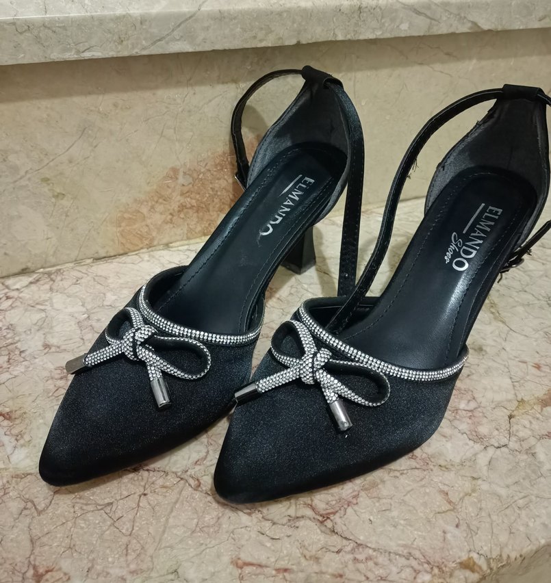 Siyah Parlak Stiletto Topuklu Kadın Abiye Ayakkabı