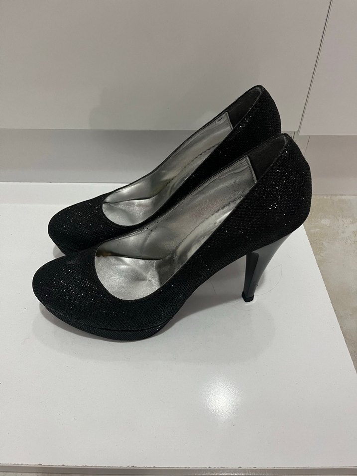 Siyah, parlak desenli gece ayakkabısı.Neredeyse hiç giyilmedi.38 numara