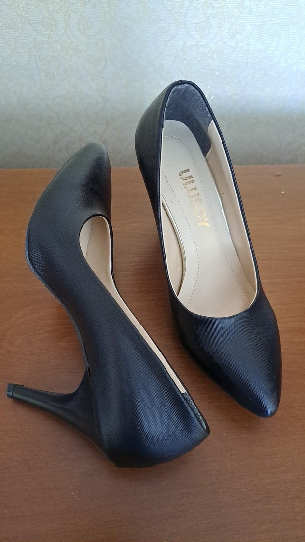 Siyah parlak stiletto topuklu, kauçuk malzemeden üretilmiş, desen içermeyen şık tasarım. Ofis için çağdaş ve zahmetsiz şıklık sunar.