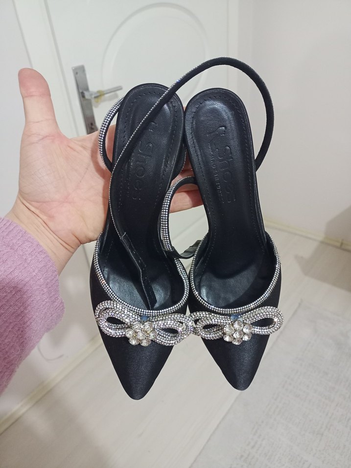 Siyah Parlak Taşlı Stiletto Topuklu Kadın Ayakkabı