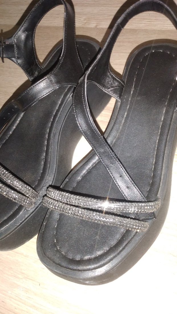 Siyah dolgu topuklu kadın ayakkabılar, tokalı kayışlar ve parlak yüzey ile dikkat çeker. Gotik tarzda, taşlı süslemeleri romantik akşamlar için uygundur.