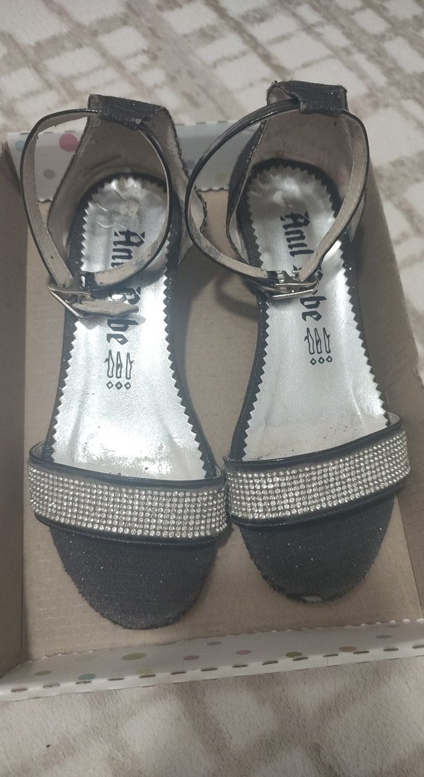 Siyah parlak dolgu topuklu, tokalı askılı ve desenli abiye ayakkabı, göz alıcı ve modaya uygun tarz için. ✨hasarlari resimde belirttim
