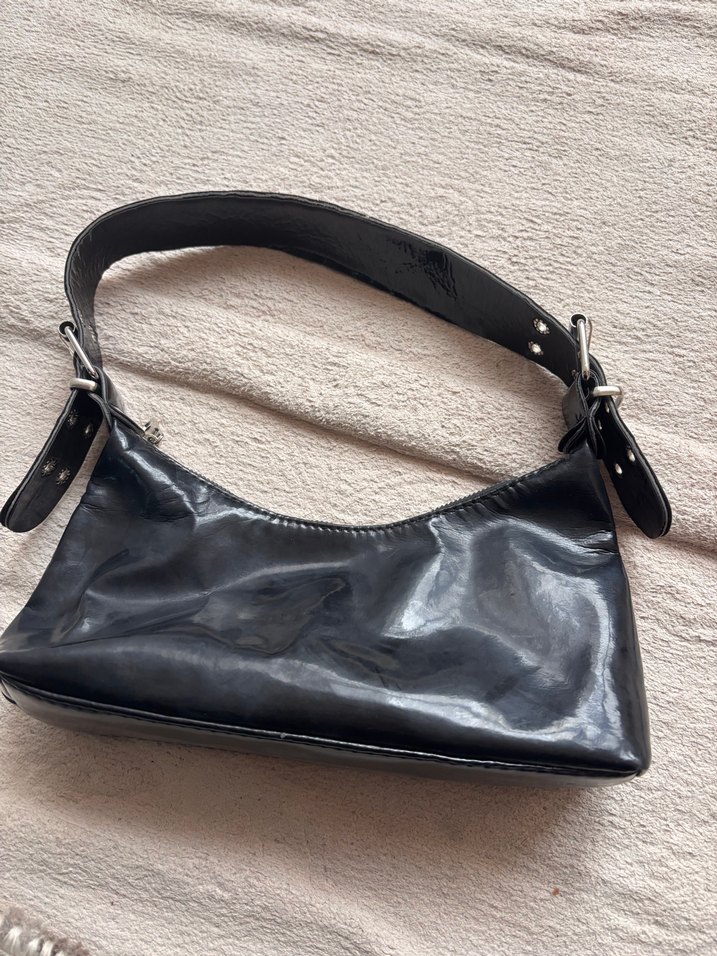 Siyah deri tokalı kadın çantası, düz ve desen içermeyen tasarımıyla Parisian goth stilini günlük kullanıma uygun şekilde sunar. Askı kısmı hafif açılma olmuş fiyata yansıttım