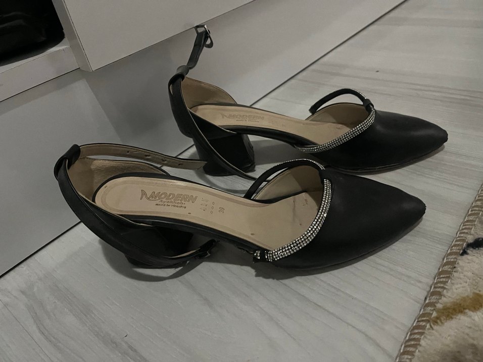 Siyah Parlak Tokalı Kadın Topuklu Ayakkabı