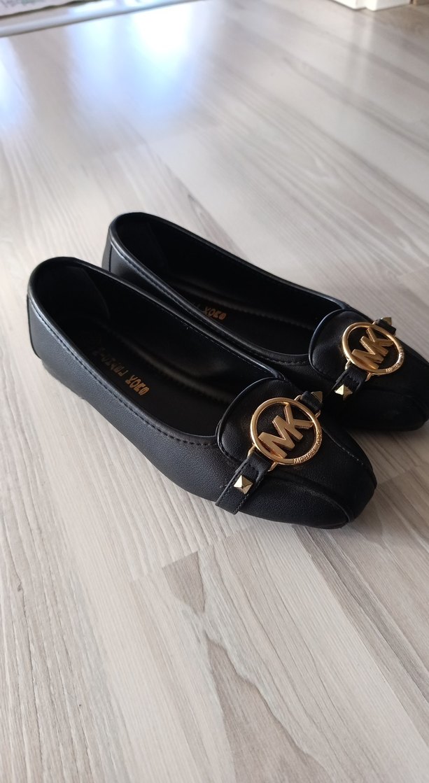 Siyah Parlak Tokalı Kadın Topuklu Babet Michael Kors Babet