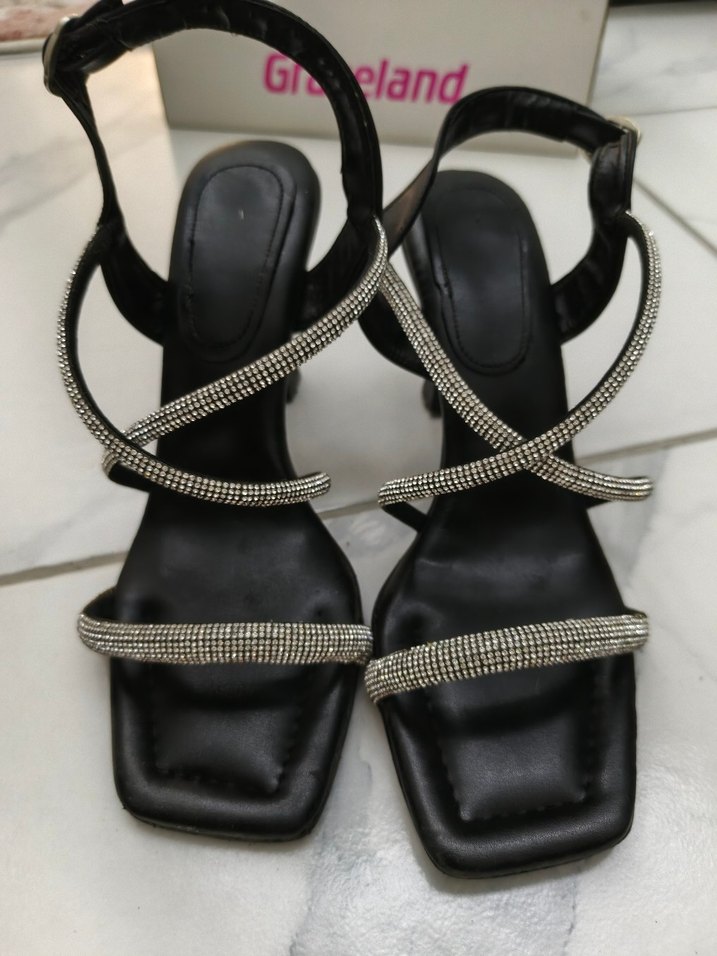 tokalı siyah parlak stiletto. Modern tasarımıyla düğün ve şık etkinlikler için uygundur. 37 numara. Sol topuk kopmuş bunu belirtiyorum görsel eklenmiştir.