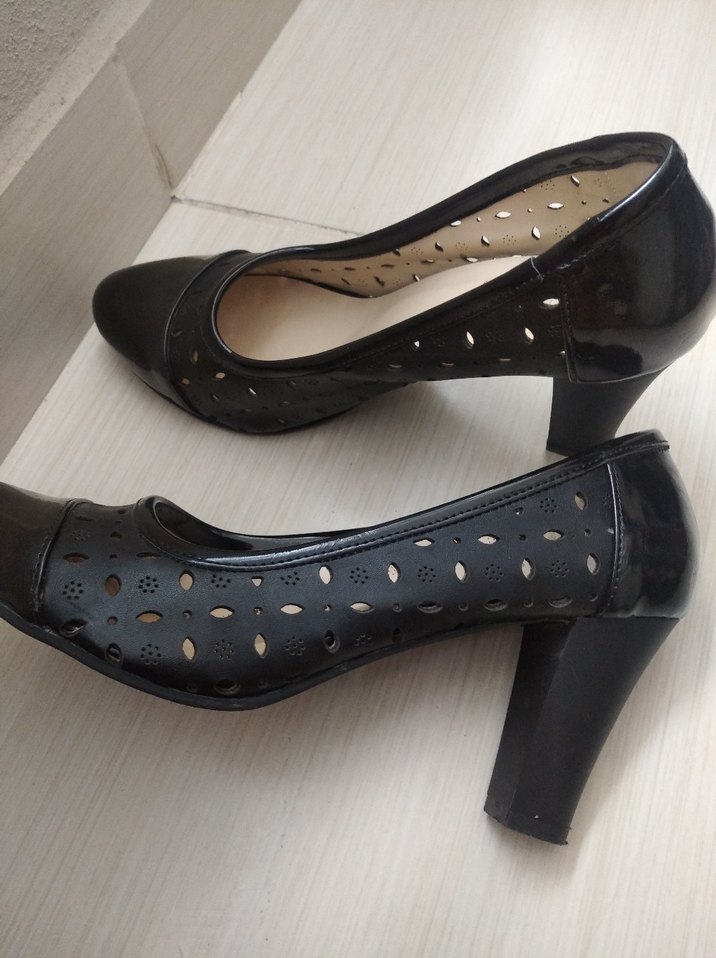 Siyah parlak tokalı stiletto topuklu kadın ayakkabı. Klasik zarafet ve gotik tarzı, günlük kullanım için uygun. ✨ sadece evde giyildi