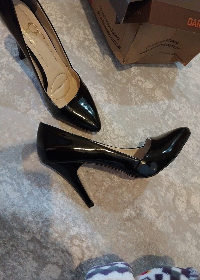 Siyah parlak topuklu ayakkabı