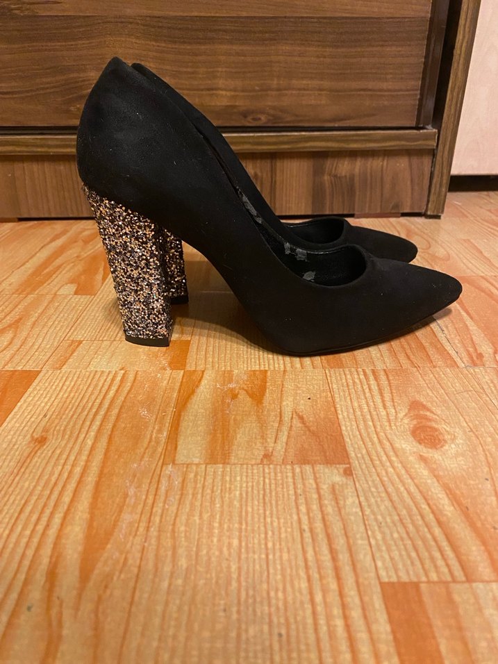 Parlak topuklu, siyah kadın stiletto. Yılan desenli, kauçuk malzemeden ve cesur gotik tarza uygun. Romantik gece için ideal. İç kısmında deri soyulması mevcut bunu bilerek alın