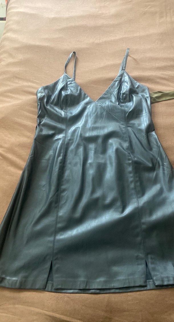 Gri renkli bu gece elbisesi, askılı kollara ve drapeli tasarıma sahiptir. V yaka ve vücuda oturan midi boyuyla parlak bir görünüme sahiptir. ✨