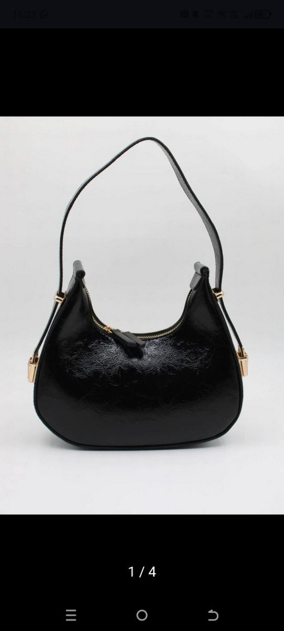 Siyah parlak yılan desenli deri çanta, tokalı detaylarıyla modern klasik ve Paris şıklığını günlük kullanıma sunar.