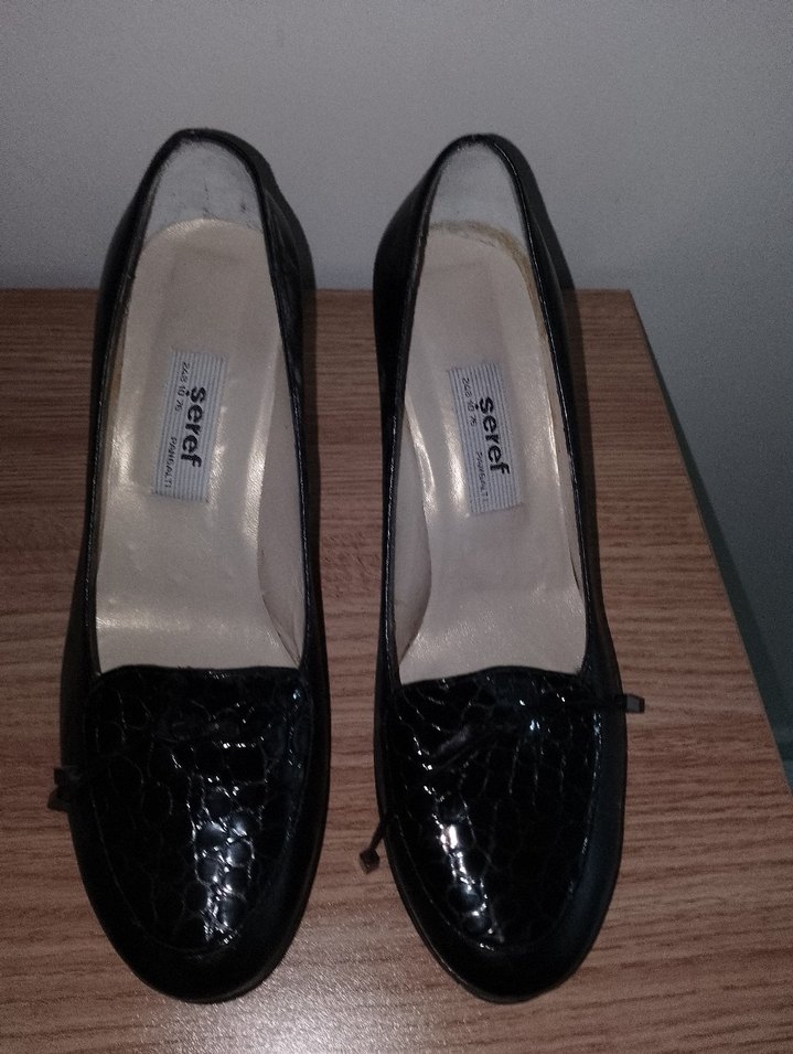 Siyah Parlak Yılan Desenli Kadın Topuklu Ayakkabı