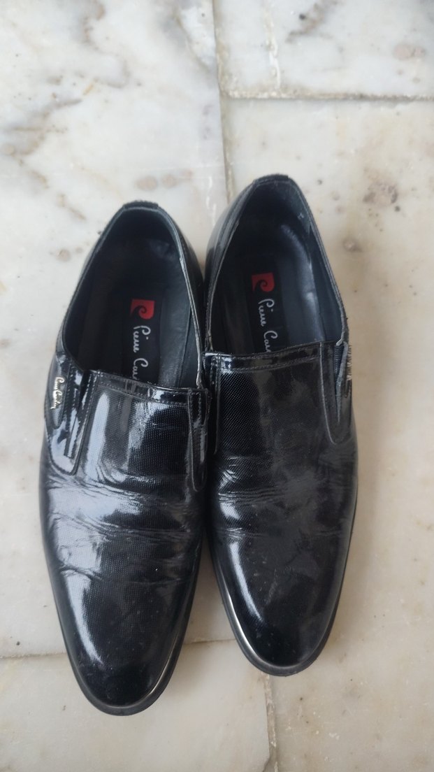Siyah parlak yılan desenli klasik erkek ayakkabısı. Kauçuk malzemeden, tokalı detaylı, iş ve ofis ortamına uygun.