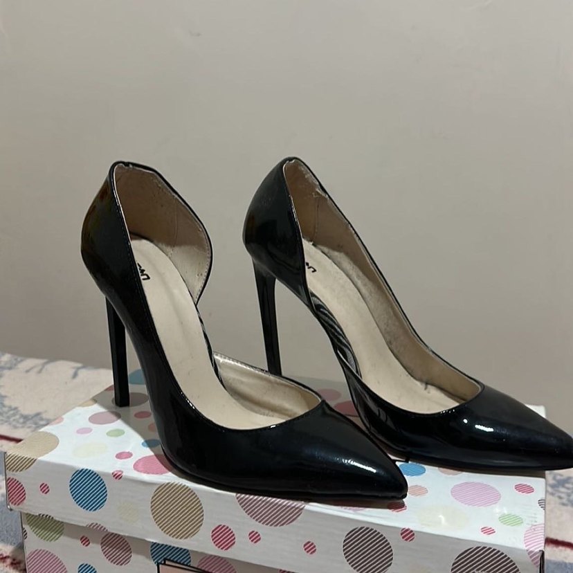 Siyah Parlak Yılan Desenli Stiletto