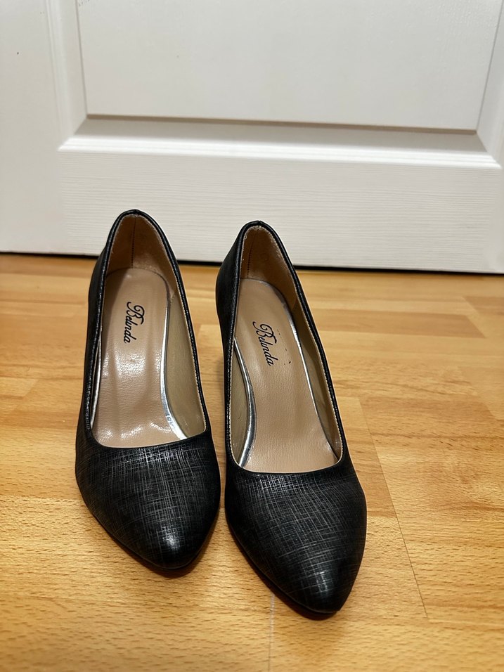 Siyah parlak yılan desenli stiletto, tokalı detaylıdır. Kauçuk malzemeden üretilmiş, ofis için klasik şıklık sunar.