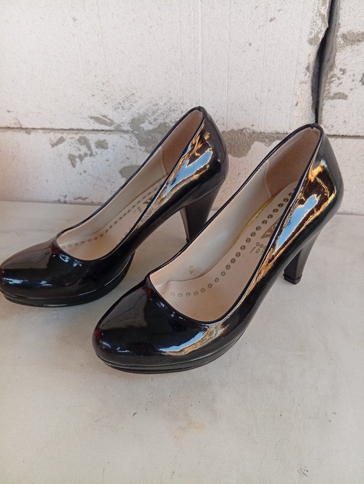Siyah parlak yılan desenli, modern klasik tasarıma sahip, kauçuk malzemeden yapılmış stilettolar, ofis kullanımı için uygun. Topuk boyu 9 cm Marka temsilidir.