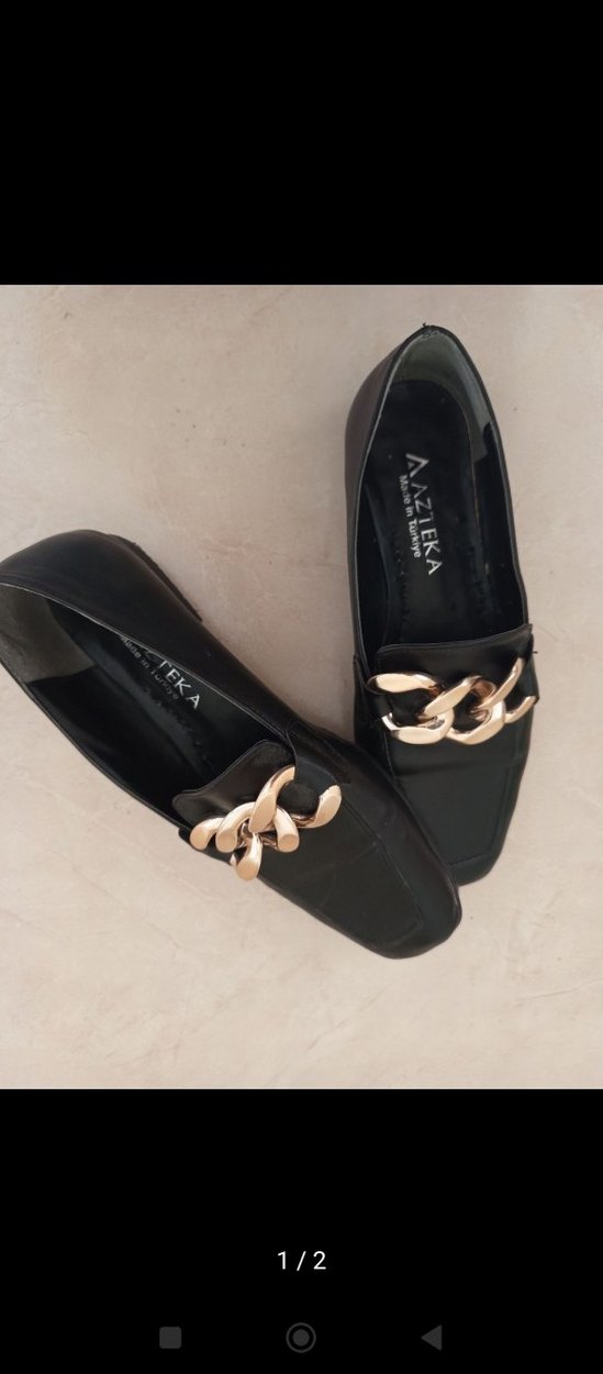 Siyah Parlak Yılan Desenli Tokalı Kadın Babet