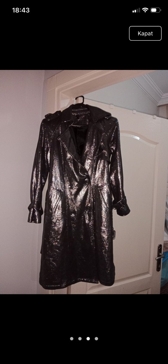 Siyah Parlak Yılan Desenli Trençkot
