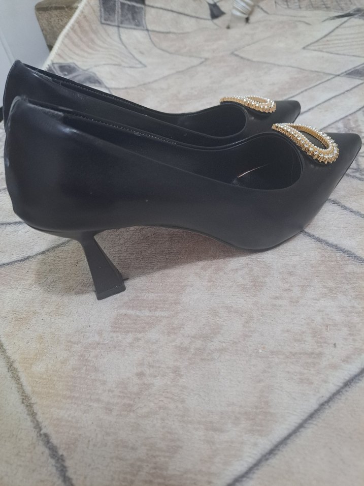Siyah Parlak Yılan li Tokalı Stiletto