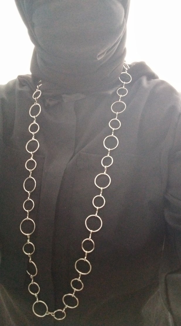 Parlak siyah, detaylı dairesel halkalardan oluşan minimalist ve gotik tarzda kadın vücut zinciri, günlük kullanıma uygun. ✨