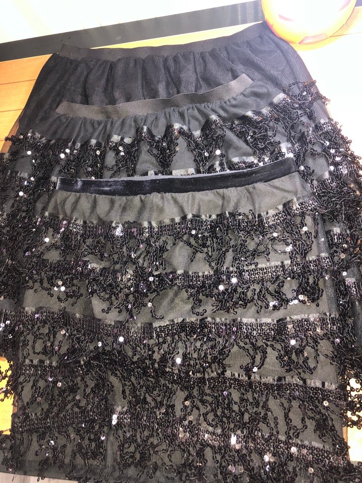 L-XL beden uyumlu siyah payet detaylı etek sadece büyük bedende olan eteğin tülün dokuma hatası çizgi vardır asla yırtık sökük değildir belli olmuyor siyah olduğu için ışıkta çektiğim için görünüyor iadesi alınır beğenilmezse son 3 adet beden mevcut anne koz olarak da tercih edilir