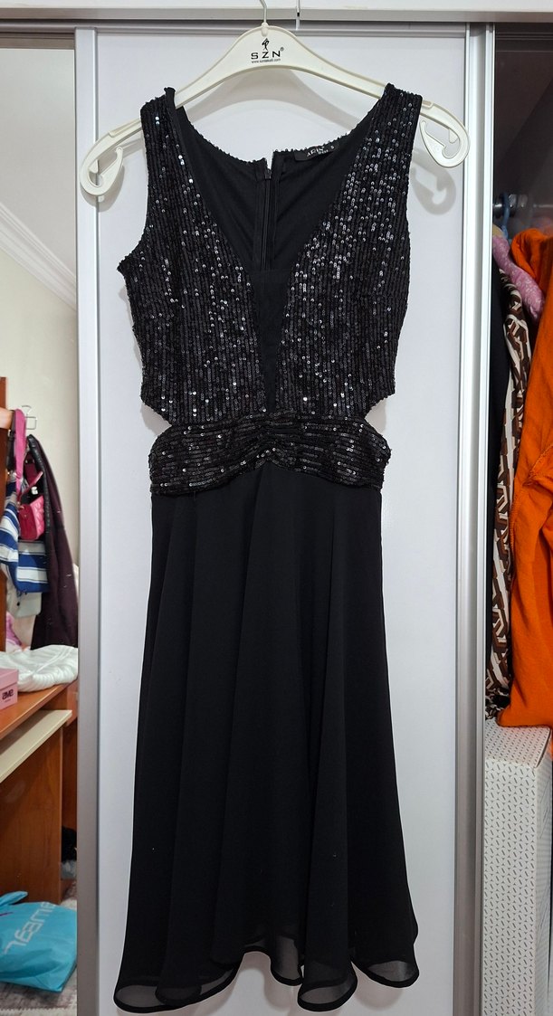 Siyah Payetli Abiye Elbise
