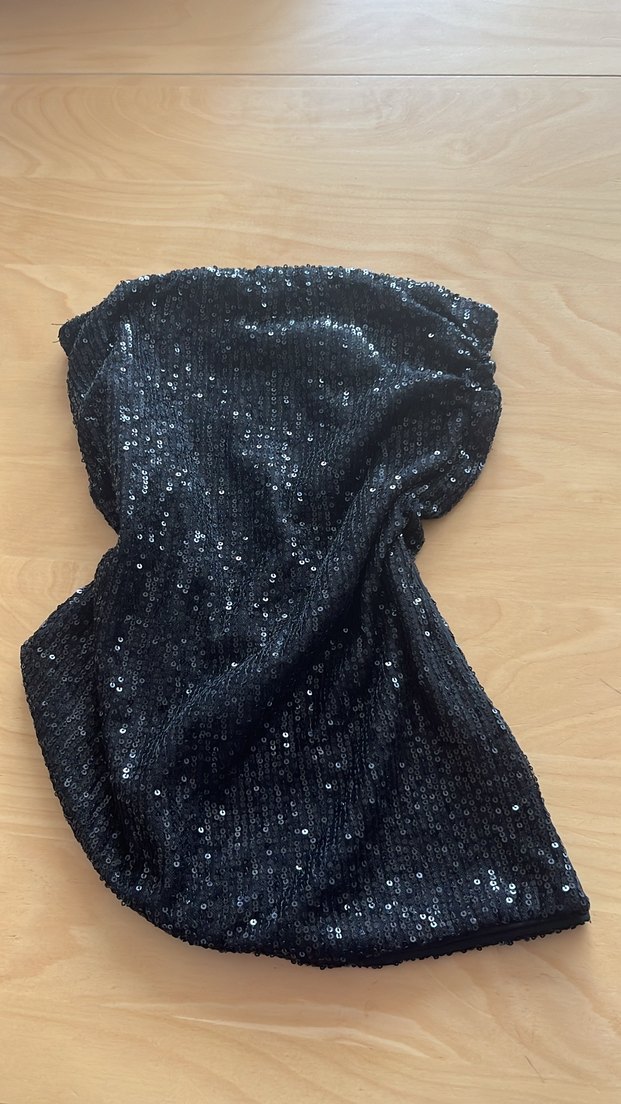 Siyah Payetli Drapeli Yırtmaçlı Straplez