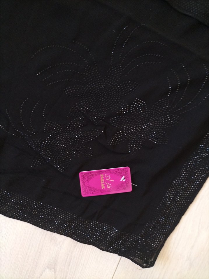 Siyah polyester kumaştan, payet detaylı, gotik stile sahip kadın mevlüt örtüsü,namaz örtüsü