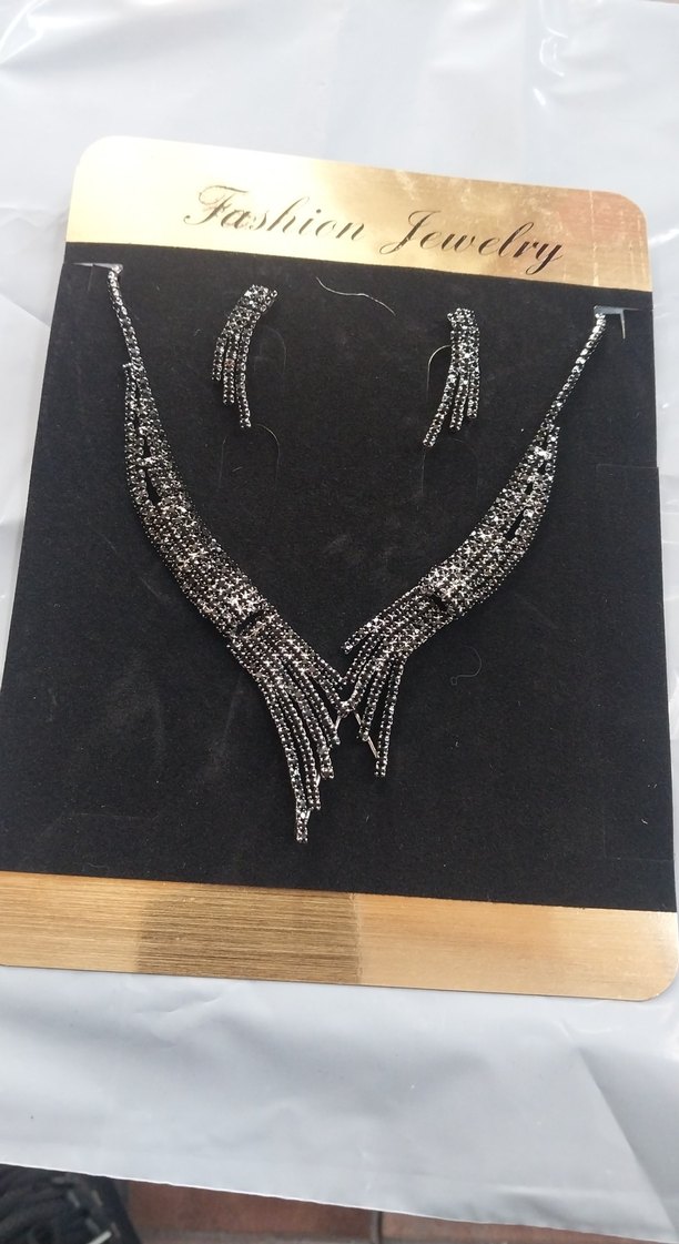 Düğün için siyah payetli ve işlemeli gotik takı seti. Fashion Jewelry markasına ait kolye ve uyumlu küpeler içerir. ✨