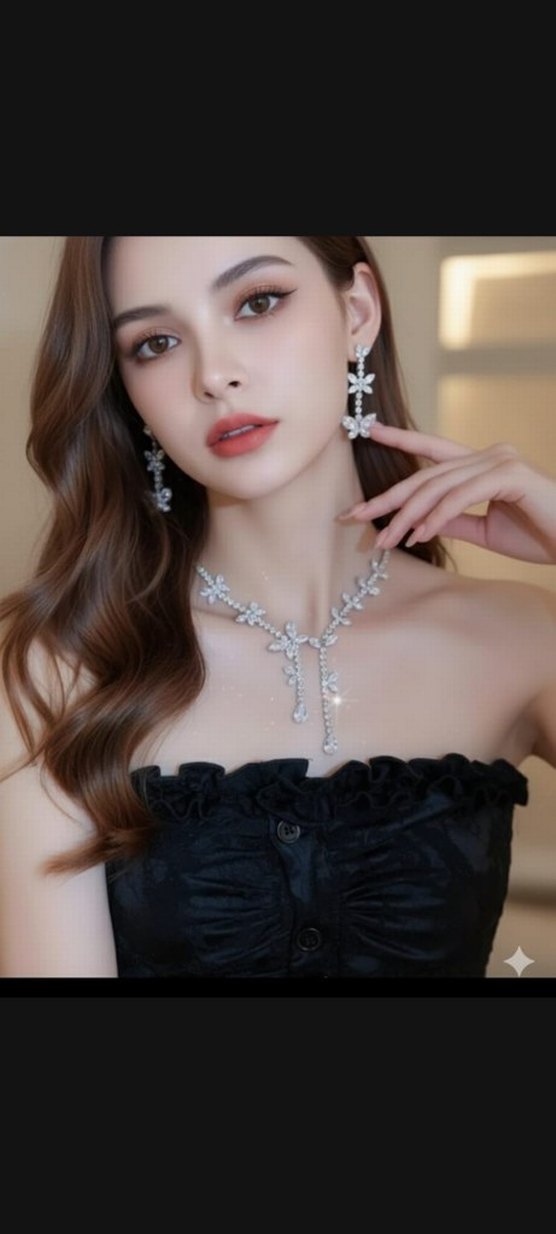 Siyah renkte, payetli ve etnik desenli gotik takı seti, klasik zarafeti ve ışıltıyı düğünler için bir araya getiriyor. ✨