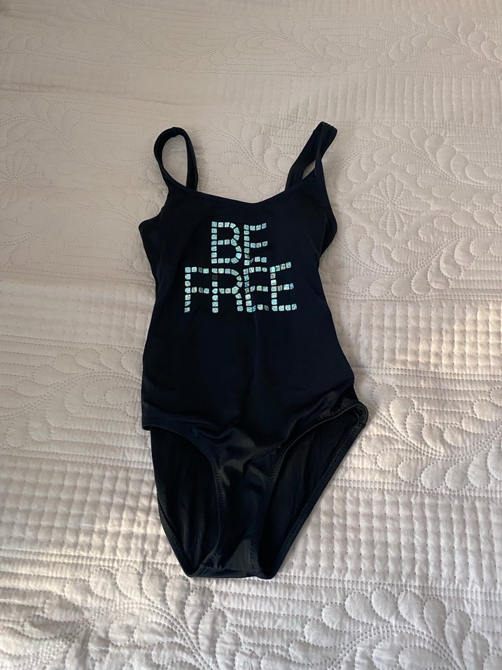 Siyah, payet işlemeli 'BE FREE' baskılı, askılı ve vücuda oturan kadın mayo, plajda şık bir tercih sunar.PENTİ’den almıştım,sadece 2 kere giyebildim bedeni olmuyor.