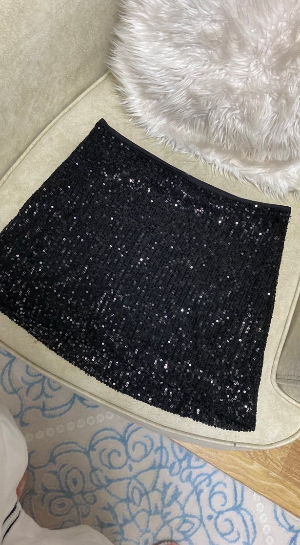 Siyah Payetli Kadın Mini Etek