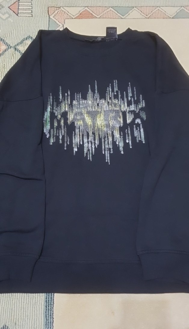 Kadınlar için uzun kollu, yuvarlak yaka ve bol kesim siyah sweatshirt. Payetli baskı deseniyle sokak stiline uygun.
