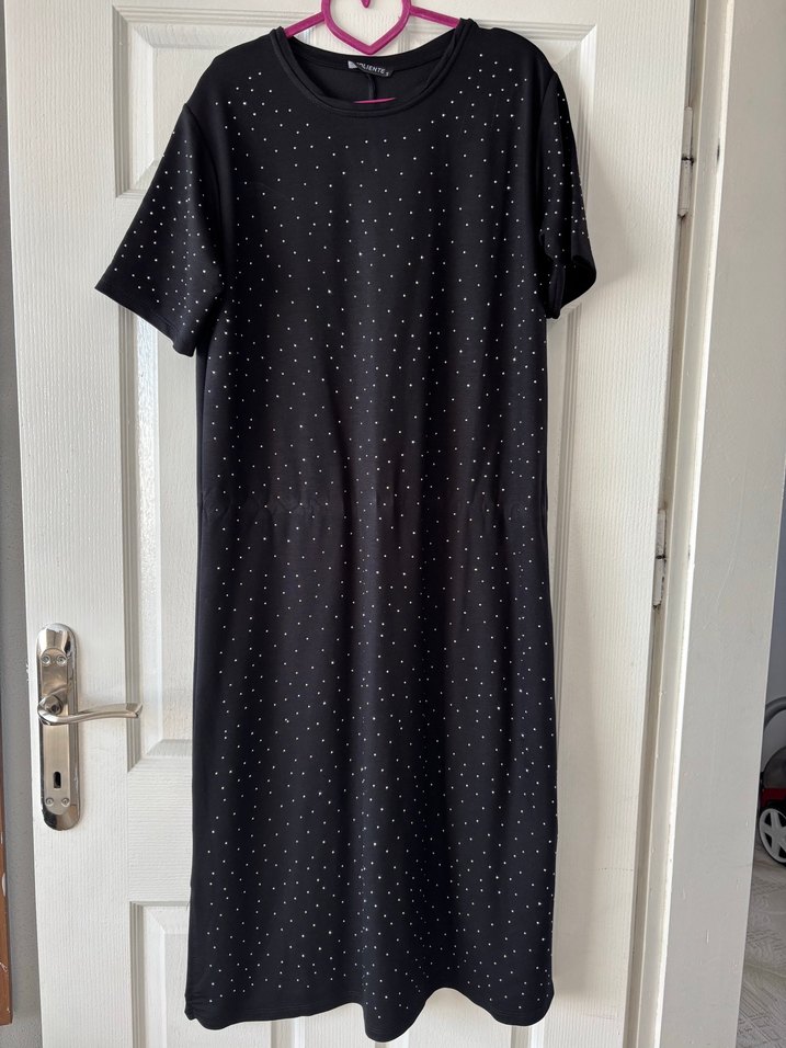 Siyah, kısa kollu, yuvarlak yakalı, bol kesim uzun elbise, payet detaylarıyla günlük kullanıma uygundur. ✨hiç giyilmedi