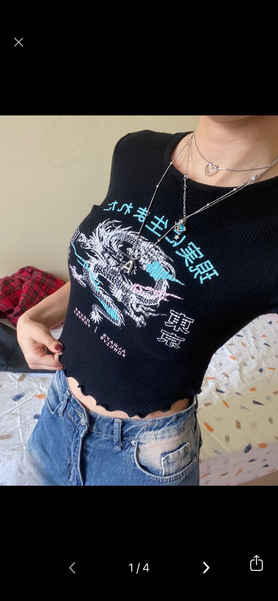Kısa kollu, bisiklet yaka, baskılı ve payet detaylı siyah denim tişört. Rock punk tarzını yansıtan, günlük kullanıma uygun fitted kesim.