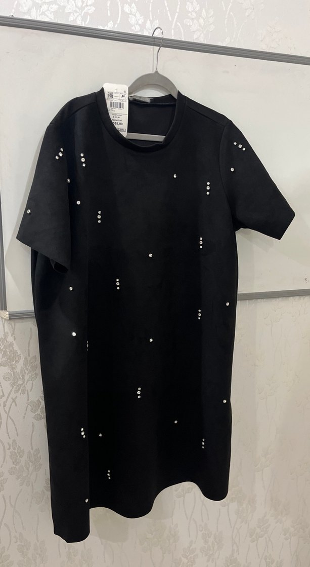 Siyah renkte, kısa kollu ve yuvarlak yakalı midi boy triko elbise. Payetlerle sade ama şık bir görünüm sunar, sentetik kumaştan üretilmiştir. Günlük kullanım için uygundur. ✨