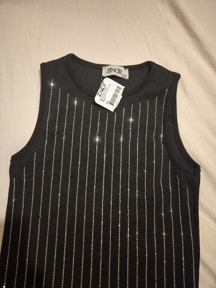 Kolsuz, dar kesim siyah süveter, yuvarlak yaka ve parlak payetli dikey çizgilerle, yumuşak sentetik kumaştan üretilmiştir. Romantik buluşmalar için uygundur. ✨ L beden fakat dar oldu . M düşünebilirsiniz.
