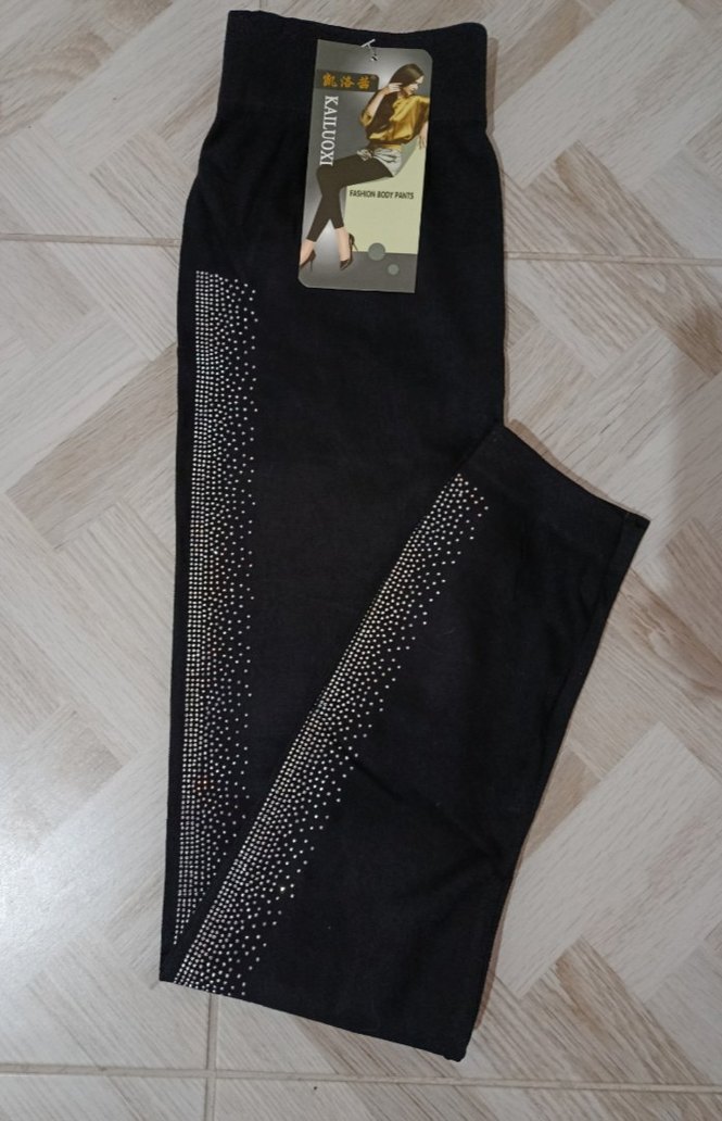 Siyah, uzun boy payetli nakış detaylı kadın tayt. Sentetik kumaştan üretilmiş, regular fit ve günlük sokak stili için uygundur. ✨