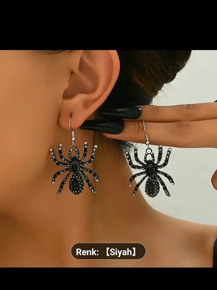 Siyah payetli, desenli detaylı örümcek şeklinde midi uzunlukta gotik küpeler. Parti için uygun, rock punk tarzına uyumlu. ️