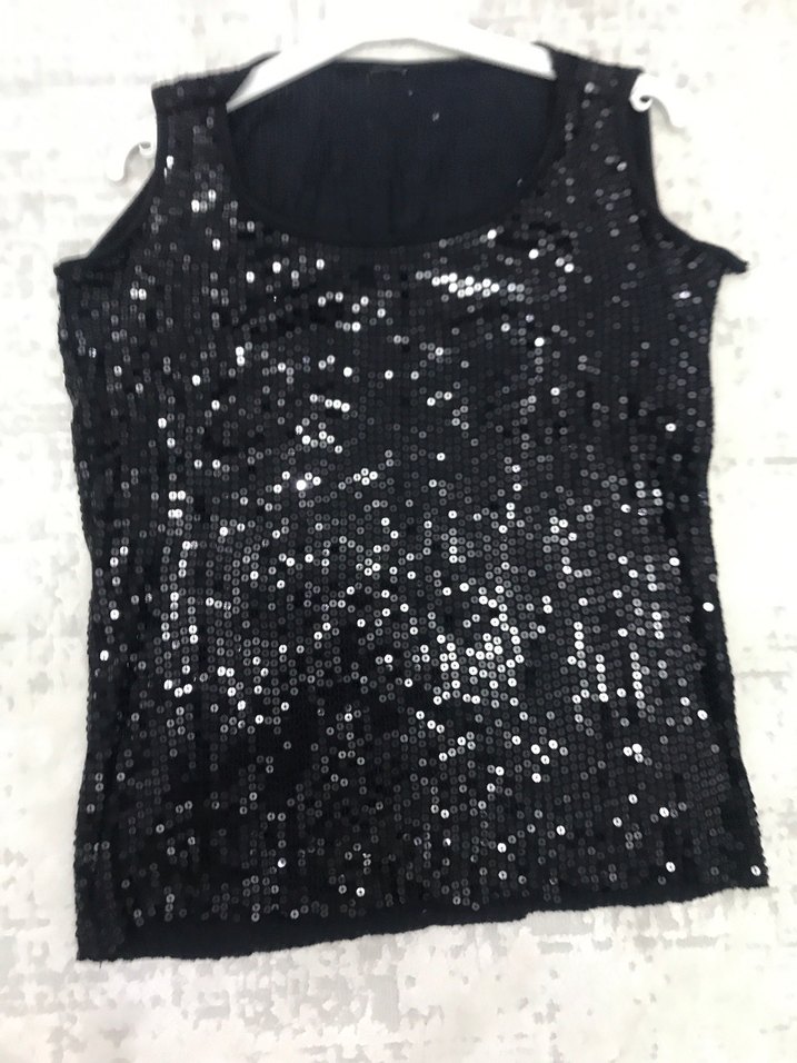 Siyah Payetli parlak Kadın Buluz Kısa mini kesim, siyah renkli, payetlerle kaplı, kolsuz ve yuvarlak yakalı bu yelek, parti için şık ve trend bir görünüm sunar. Fit kesimi ve koyu rengi goth tarzına uygundur. ✨ 38-44 beden için uygundur