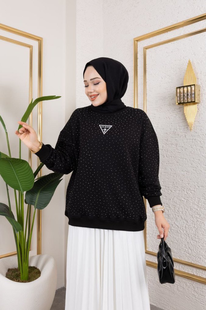 GUESS TAŞLI SİYAH SWEATSHİRT M M L Ölçüleri S beden boy 66 cm en 58 cm M beden boy 67.5 cm en 58.5 cm L beden boy 68 cm en 59 cm