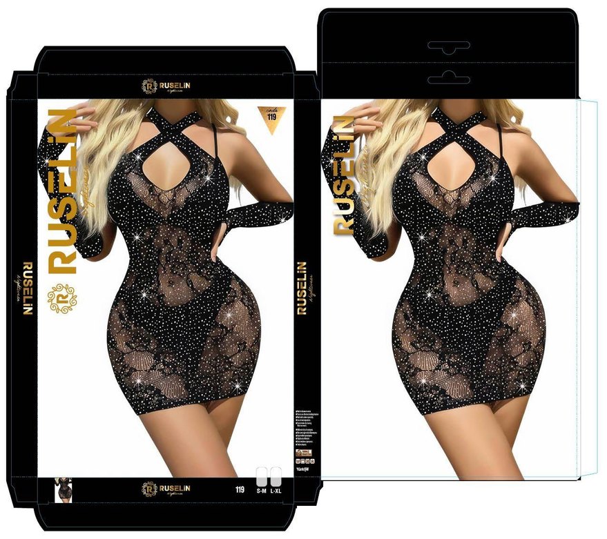 Siyah, straplez yaka ve ince askılı, payetli baskılı desenli, vücuda oturan mini elbise. Sentetik kumaştan, göz alıcı gotik parti tarzı için uygun. ✨