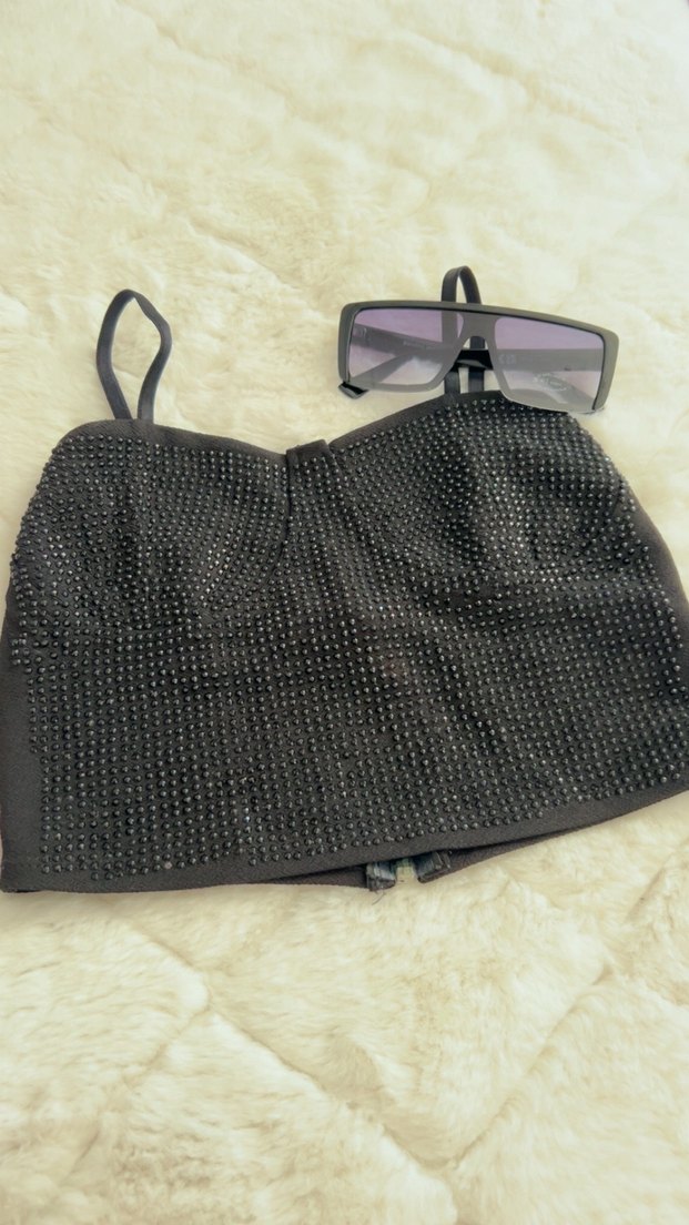 Siyah Payetli Strappy Mini Bustiyer