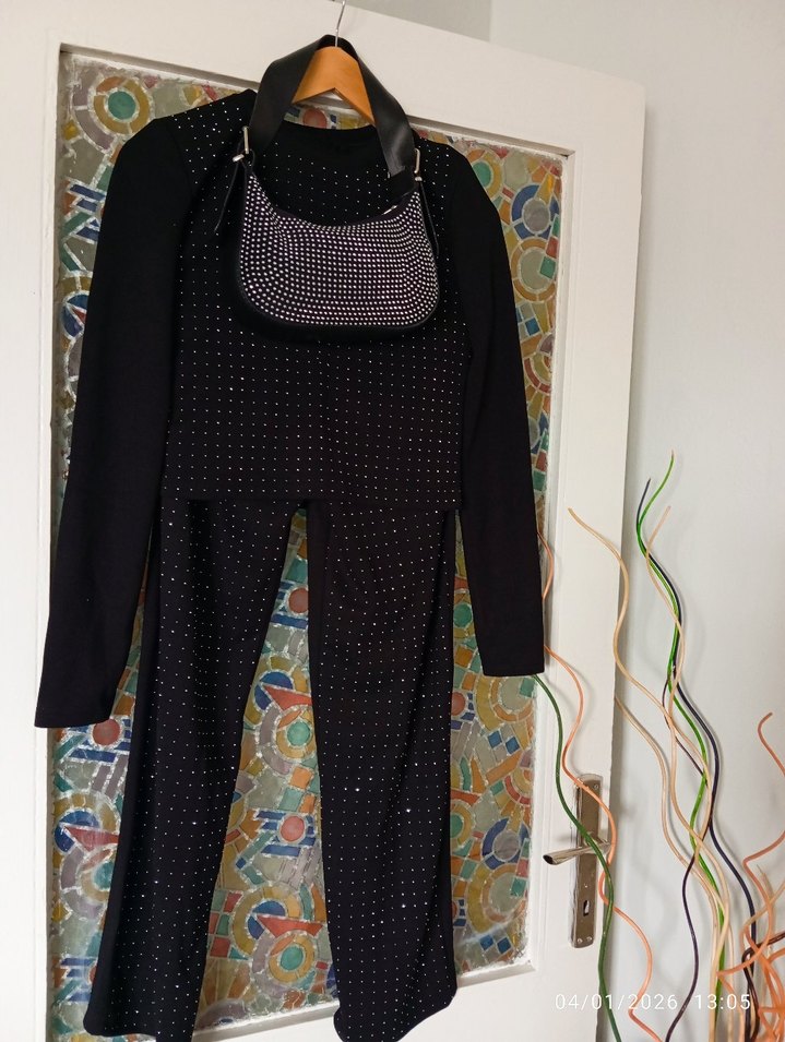 (YENİ SIFIR ÜRÜN)Siyah Payetli takım ve çanta
