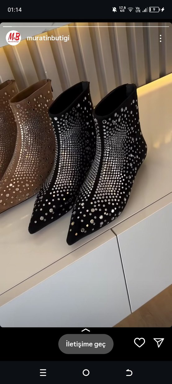Siyah süet stiletto botlar, payetli puantiye deseniyle güncel ve göz alıcı bir tarz sunar. ✨ 38-39 numara şık siyah taşlı bot Murat'ın butiginden aldım giyilmemiş