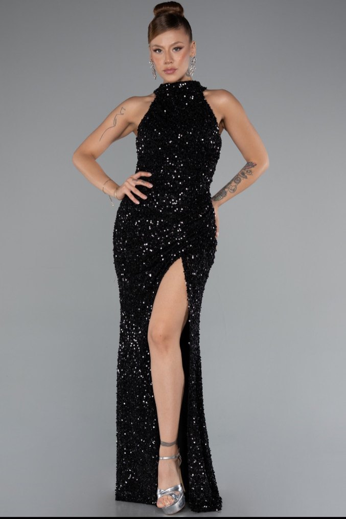 Siyah Payetli Uzun Abiye