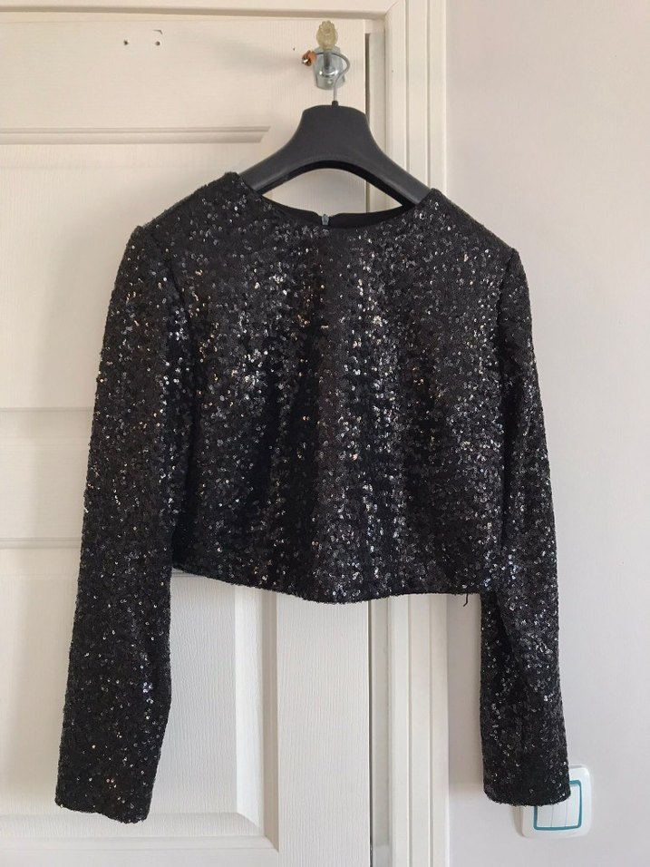 Siyah Payetli Uzun Kollu Kadın Bluz