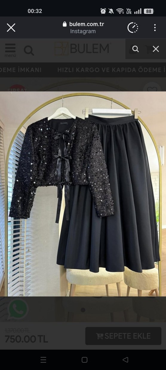 hiç giymedim. bedeni bana bol geldiği için iadeyi kaçırdım. ama etiketini sökmüştüm.Siyah payetli uzun kollu üst ve yüksek bel, geniş kesim etekten oluşan abiye takımı. Düğünler için uygun şık tasarım. ✨