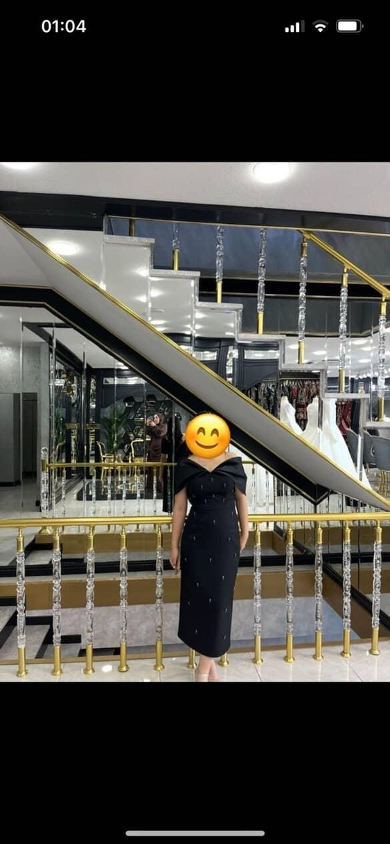 Siyah uzun abiye elbise, parlak yılan deseni ve payet detaylarına sahiptir. Kayık yaka ve askılı kollu, regular fit ile çağdaş ve avangart bir tarz sunar. Parti için uygundur. ✨